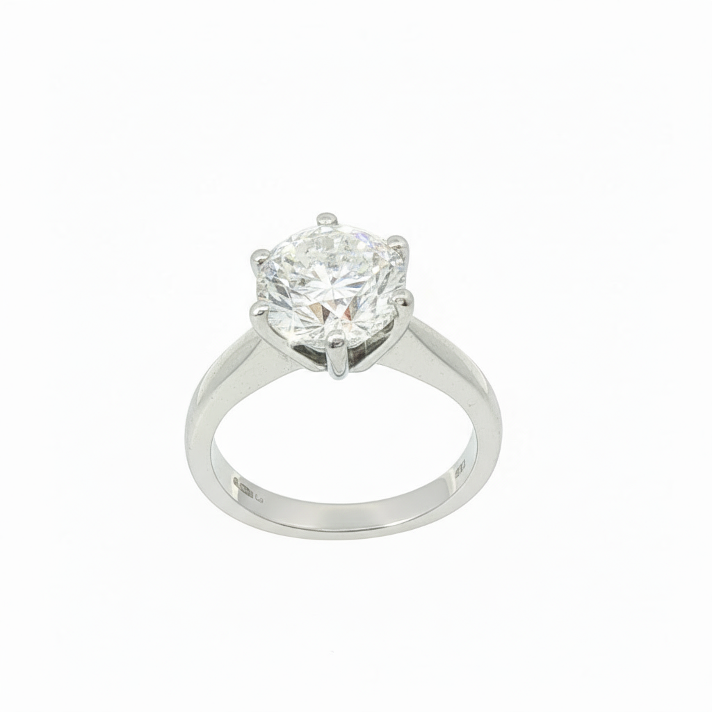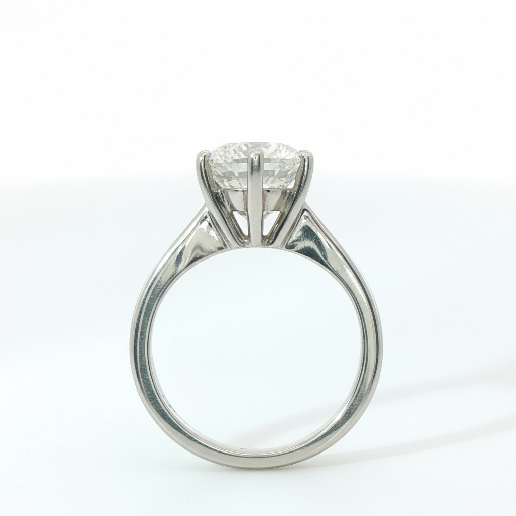 This exquisite 2-carat round brilliant diamond solitaire features SI1 to SI2 clarity and G to H colour, set in a durable platinum 6-claw setting. Expertly crafted, this classic design maximises light reflection for exceptional brilliance, making it an elegant choice for a timeless engagement ring. Available in size G ½, it offers both precision and sophistication for discerning jewelry connoisseurs.
