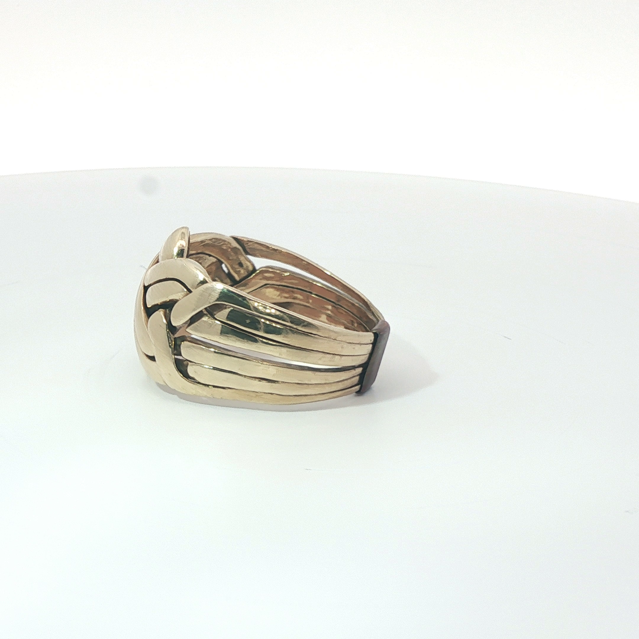 This pre-owned 9ct gold puzzle ring is a captivating piece that combines craftsmanship with intrigue. Weighing 10.37g, the ring features the classic interlocking design that has fascinated collectors for generations. Crafted in 9ct gold, it offers genuine precious metal value alongside its distinctive aesthetic appeal. Size W ensures a comfortable fit, making this vintage treasure both wearable and collectible. An excellent choice for those who appreciate unique jewellery with character and history.