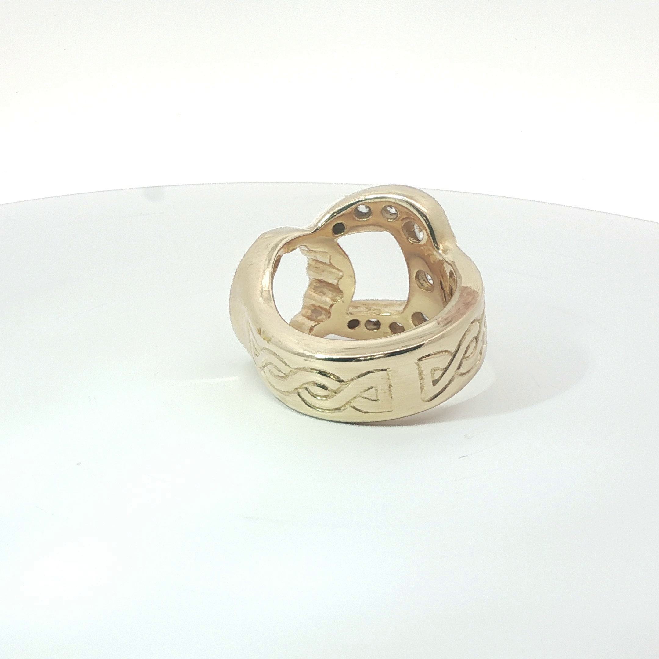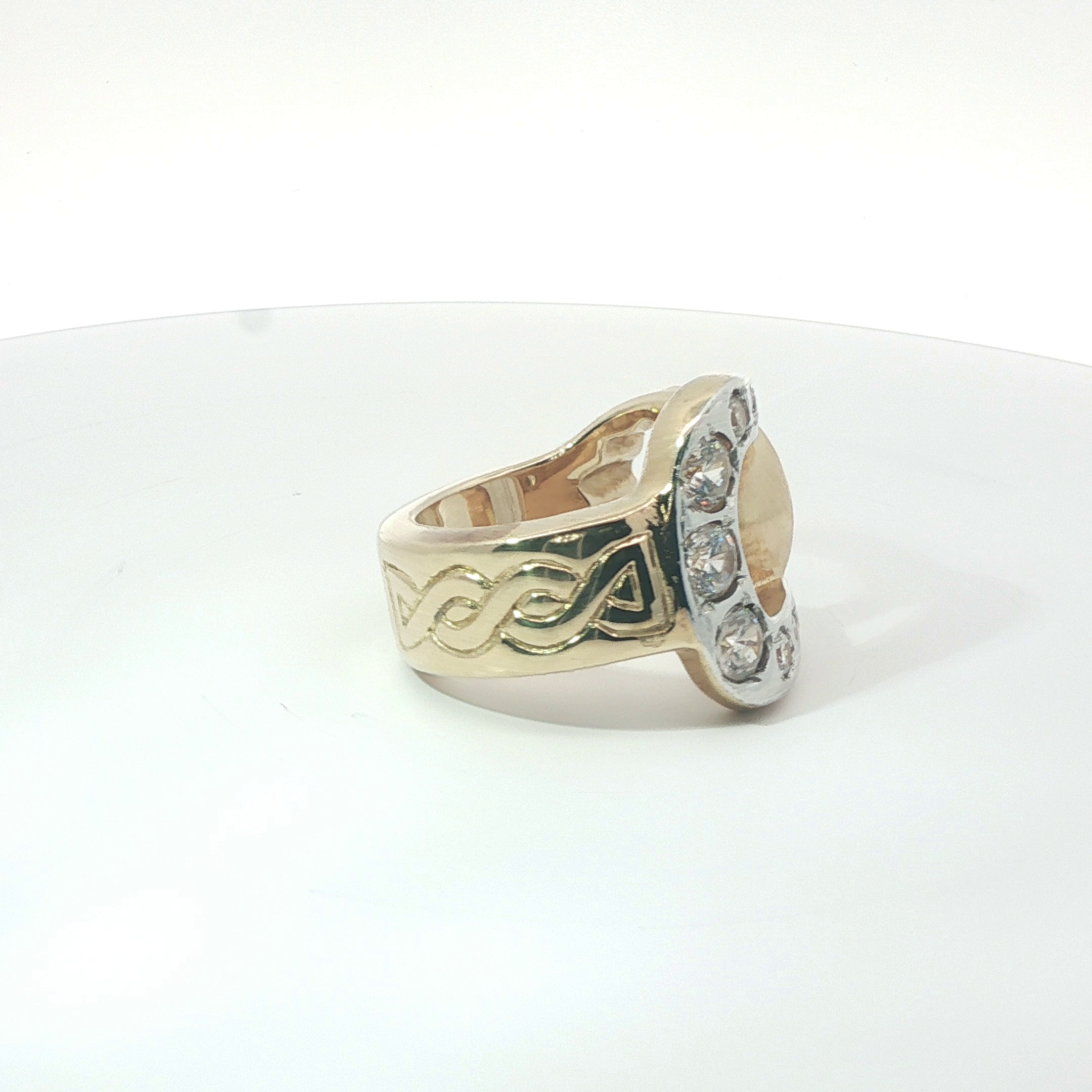 This pre-owned 9ct gold spanner ring showcases a sophisticated stone-set cubic zirconia design, offering timeless elegance at an accessible price point. Weighing 39.17g, the substantial gold content ensures durability and lasting value. The size Z+ accommodation makes this piece ideal for those seeking premium jewellery with practical wearability. Perfect for collectors or those preferring pre-owned luxury, this ring combines craftsmanship with the reassurance of genuine 9ct gold construction.