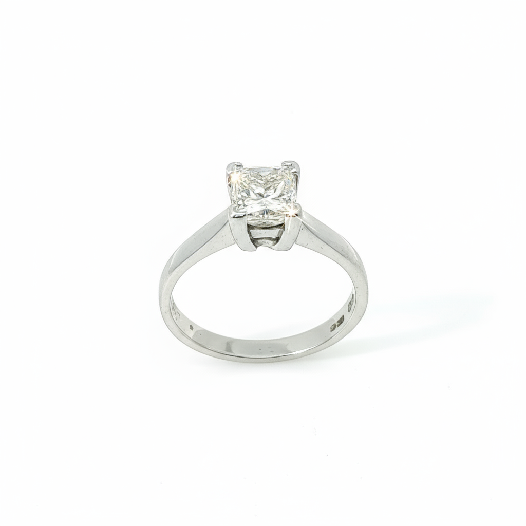 1.00ct Princess Cut Diamond Solitaire Ring – 18ct White Gold